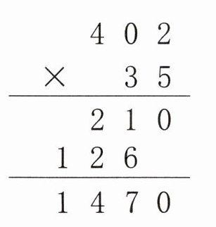 $\begin{array}{r}402 \\× 35 \\\hline210 \\126 \\\hline1470 \\\end{array}$