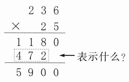 例 2 列竖式计算 $236×25$,箭头所指的部分表示什么?