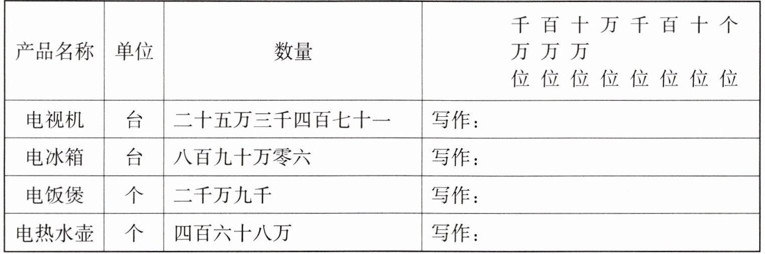 1 下面是某电商平台去年家用电器的销售情况,先读一读,再写出每种商品的销售量。