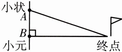 3. 小元会赢,因为小元的起点B到终点是垂直线段,垂直线段最短