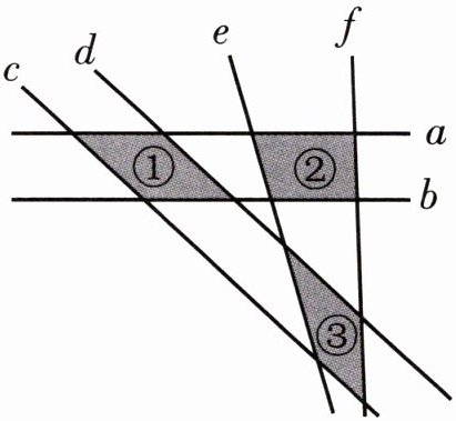 2. 右图中,直线 $ a // b $,直线 $ c // d $,直线 $ e $ 与 $ f $ 不平行,那么图中各代号所代表的图形中,是平行四边形的是(