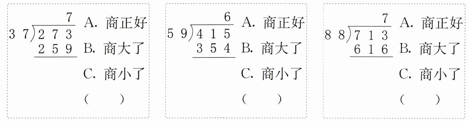 2. 根据试商的情况,选择正确的序号填在括号里。