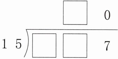 填数时保证15能整除被除数前两位,这样的数有15、30、45、60、75、90,再填相应的商即可;根据三位数除以两位数计算规则,商的十位上按顺序从1开始依次写出所有可能