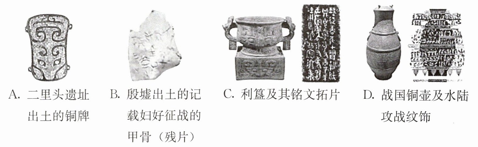 18. “二重证据法”主要指“纸上之材料”与“地下之新材料”相互印证的文史研究方法。以下文物中,能够与《诗经》中“牧野洋洋,檀车煌煌,驷騵彭彭……凉彼武王,肆伐大商”记载内容相互印证的是( )。