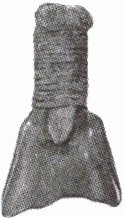 图1.10 河姆渡遗址出土的带藤条残木柄骨耜(河姆渡人广泛用于稻作生产的农业工具)