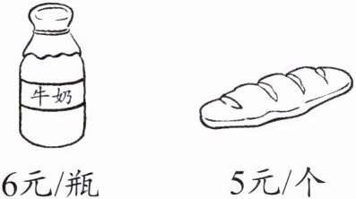 6. 买 5 瓶牛奶的钱可以买几个面包?