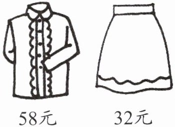 衣服价格$58$元,裙子价格$32$元,一套衣服总价为:$58 + 32 = 90$(元)