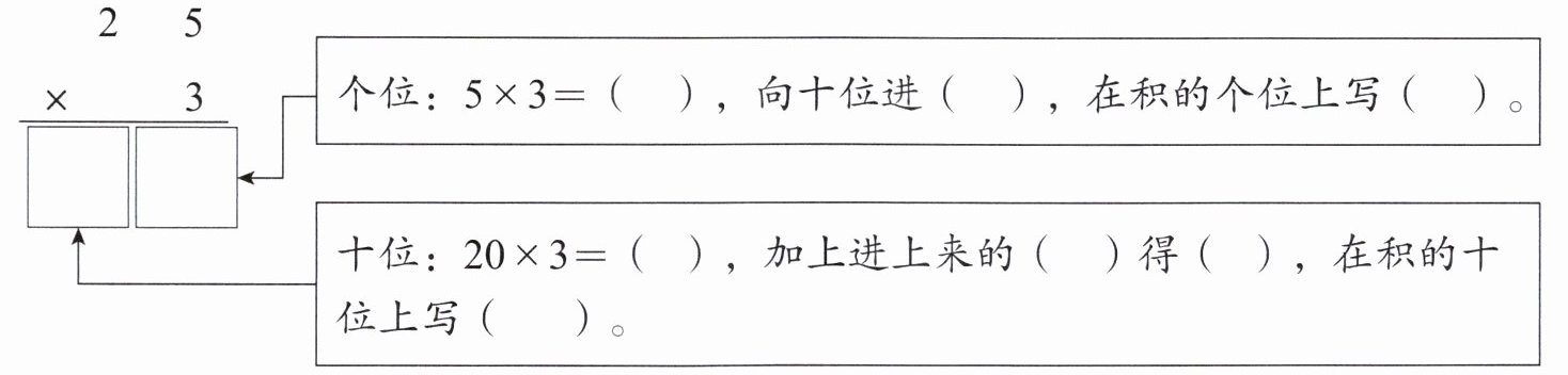 )位起,用一位数依次乘多位数的每一位,哪一位乘得的积满几十,就向前一位进几。