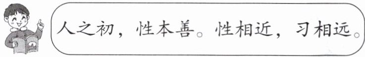 1. 观察插图,每句《三字经》字数:第一句“人之初,性本善。”中不含标点的字为“人之初性本善”,共6字;第二句“性相近,习相远。”中不含标点的字为“性相近习相远”,共6字。