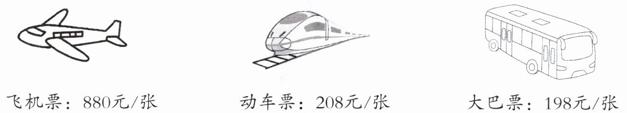 飞机票:880元/张 动车票:208元/张 大巴票:198元/张