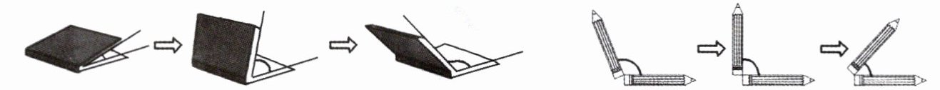 (2)如右上图,用铅笔摆角,两支笔慢慢合拢,所形成的角越来越(