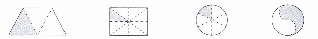6. 下面每个小图形各占整个图形的几分之一,请你写一写。