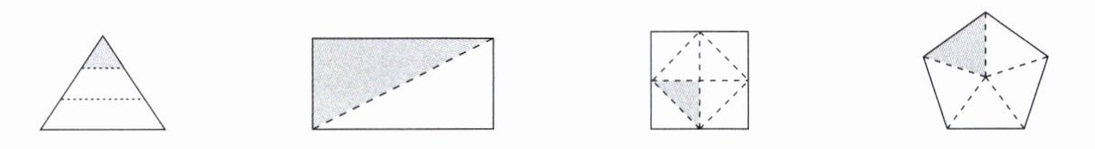 4. 画出下面图形的$\frac{1}{4}$,并涂上颜色。