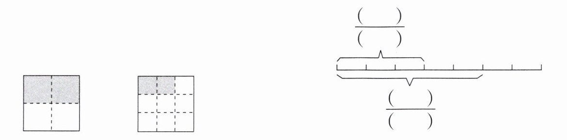 (2)一张圆形纸的$$ \frac{2}{5} $$和一张正方形纸的$$ \frac{3}{5} $$相比,(