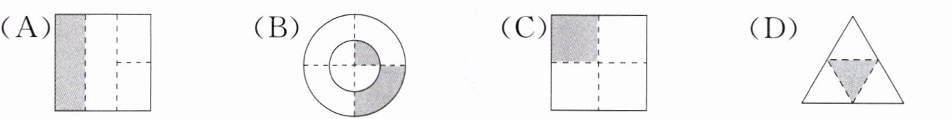 3. 下图中涂色部分不能用$\dfrac{1}{4}$表示的是(