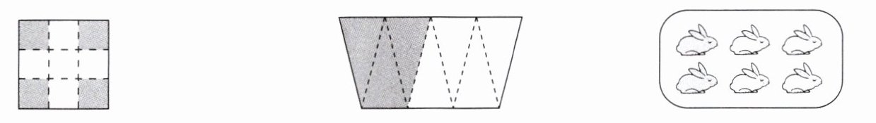 2. 用分数表示各图中的涂色部分和空白部分。