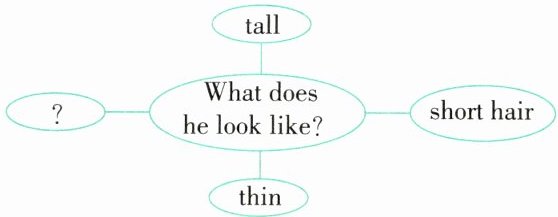 A 题干意为“下列哪个词可以放在这个思维导图中?”。handsome“帅气的”;brave“勇敢的”;kind“善良的”;helpful“有帮助的”。根据思维导图中的“What does he look like?”可知,图中的词是描述外貌的。故选A。
