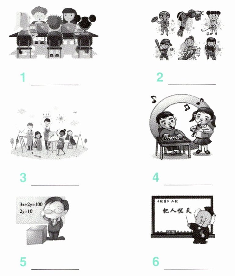1 IT 2 PE 3 art 4 music 5 maths 6 Chinese