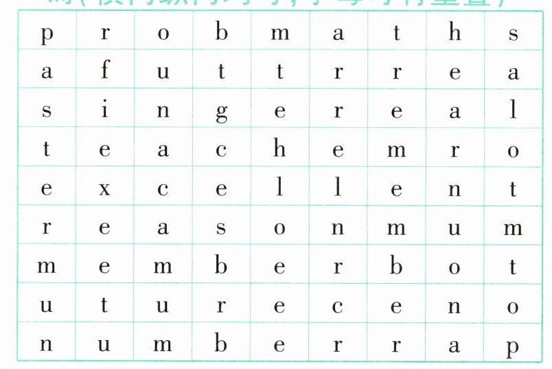 二、根据英语提示在方框中圈出对应的单词(横向纵向均可,字母可有重叠)