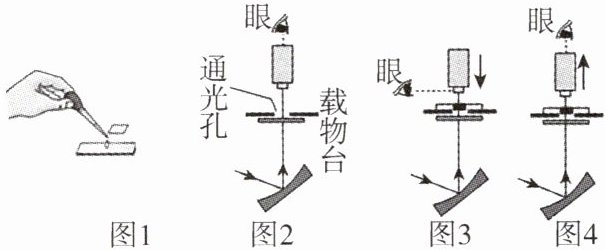 。(2) 图2、图3、图4分别表示使用显微镜时的操作步骤。其中图2所示操作的目的是能够在显微镜中形成一个明亮的圆形视野,那么这一步骤的名称是