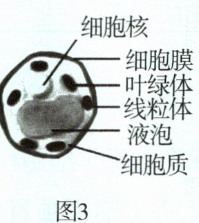 第三组同学利用彩色橡皮泥等材料制作了植物细胞模型,如图 3 所示。