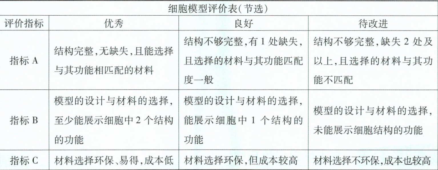 (4)同学们在老师的指导下制作细胞模型,同时针对该模型的科学性设计了评价表(如下)。