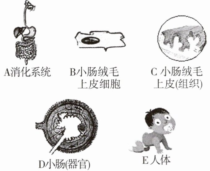 13 C 人体的结构层次排序是细胞(B)→组织(C)→器官(D)→系统(A)→人体(E)。