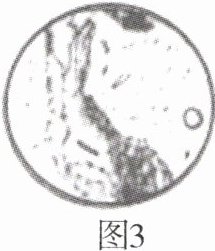 (5)该小组学生又撕取番茄中的白色筋络制作成临时装片,放在同样放大倍数的显微镜下观察(如图3)。发现白色丝状结构呈管状,里面有液体在流动。这些筋络属于