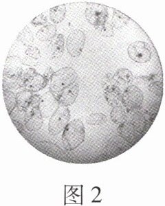 (3)该小组学生挑取了番茄果肉制作临时装片,放在同样放大倍数的显微镜下进行观察(如图2)。果肉细胞液泡较大,细胞壁