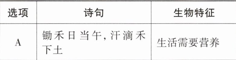 5 传统文化[2024 榆林期末]下列诗句中描述的生命现象与其体现的生物特征,相符的是(