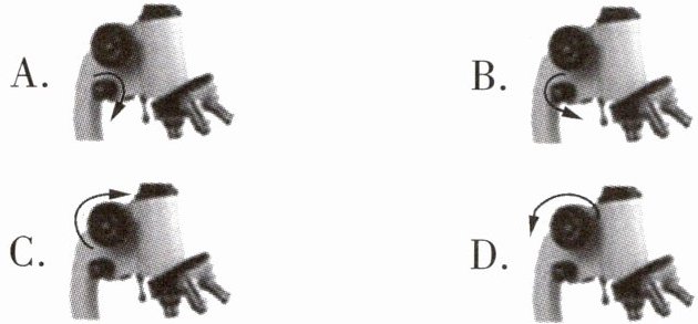 6 [2025 保定期中]小乐在操作单目显微镜时,要让镜筒下降,使物镜接近玻片标本,应转动的调节钮及方向是(