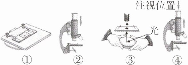 4 兰兰在用显微镜观察洋葱鳞片叶内表皮细胞临时装片时,看到了模糊的物像①,要想调节为清晰的物像②,正确的操作是(