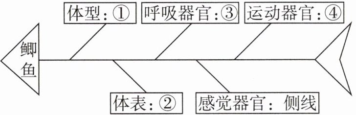 11 [2025淮安中考]某同学在观察鲫鱼后,梳理了鲫鱼的部分特征(如图),其中错误的是(