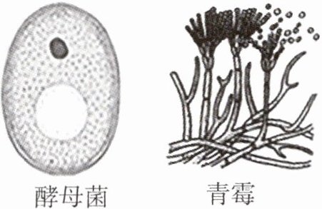 4. [2025保定期末]如图是某同学在进行“观察酵母菌和霉菌”的实验时,绘制的酵母菌和青霉的形态结构图,有关叙述正确的是 (