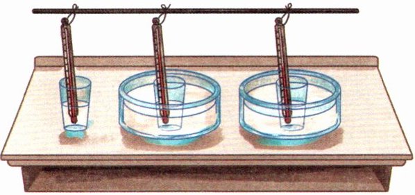 2. 找3个相同的玻璃杯子,同时倒入相同温度的等量的热水,并分别放入一支水温计。