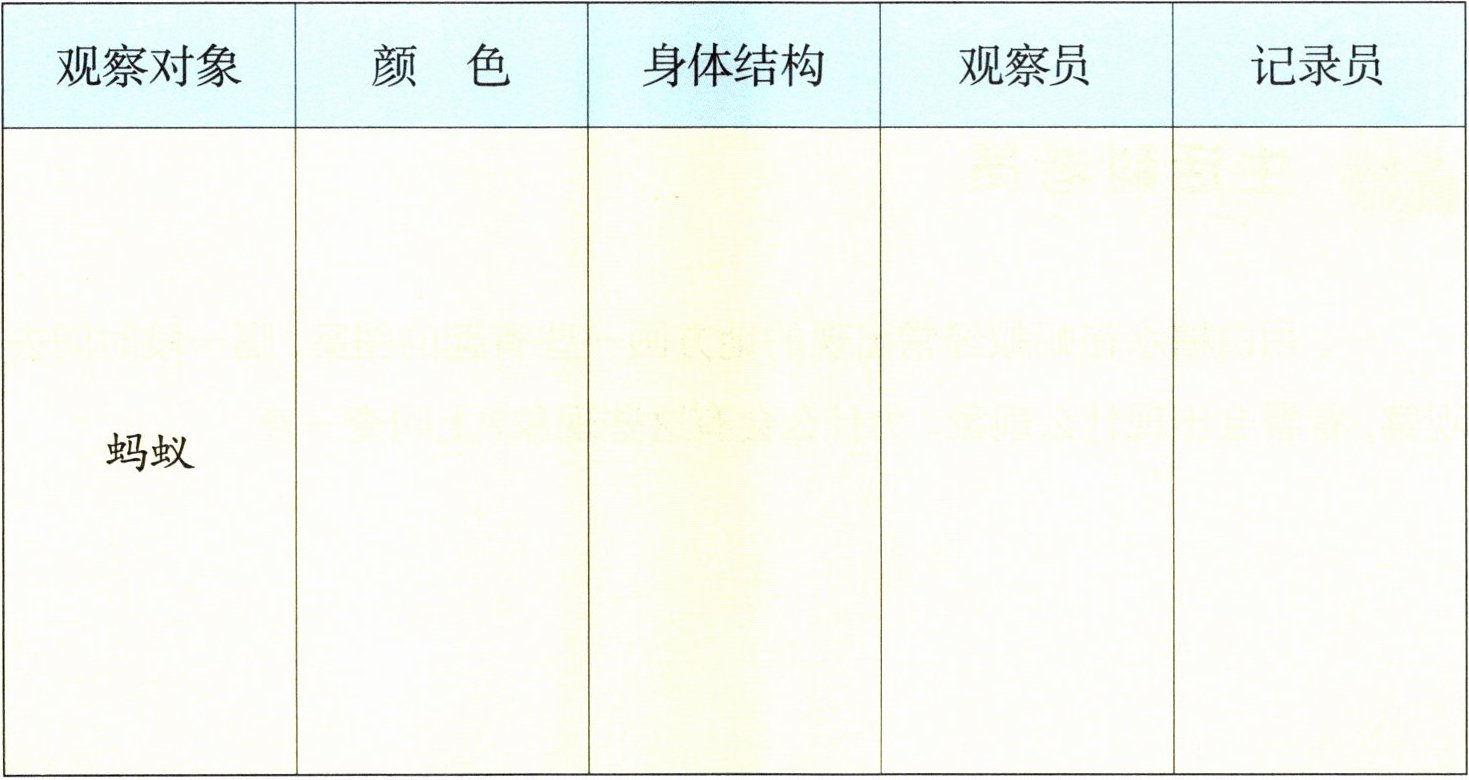 【实验要求】小组观察蚂蚁,根据分工做好记录,不要伤害蚂蚁。