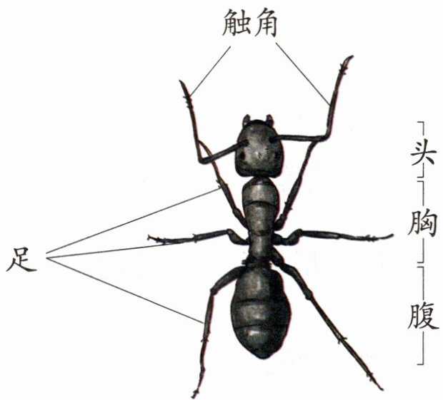 4. 蚂蚁和蝗虫的身体相差很大,没有共同点。(
