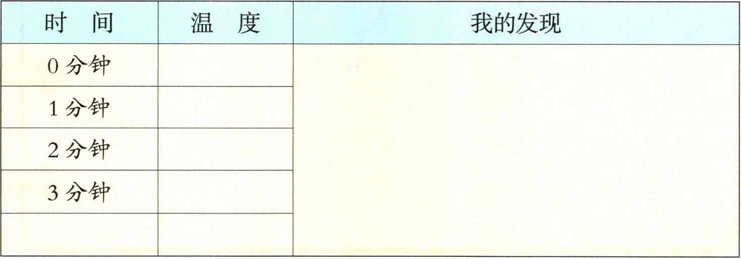3. 将水温计从水中取出,每隔一分钟观测一次温度。