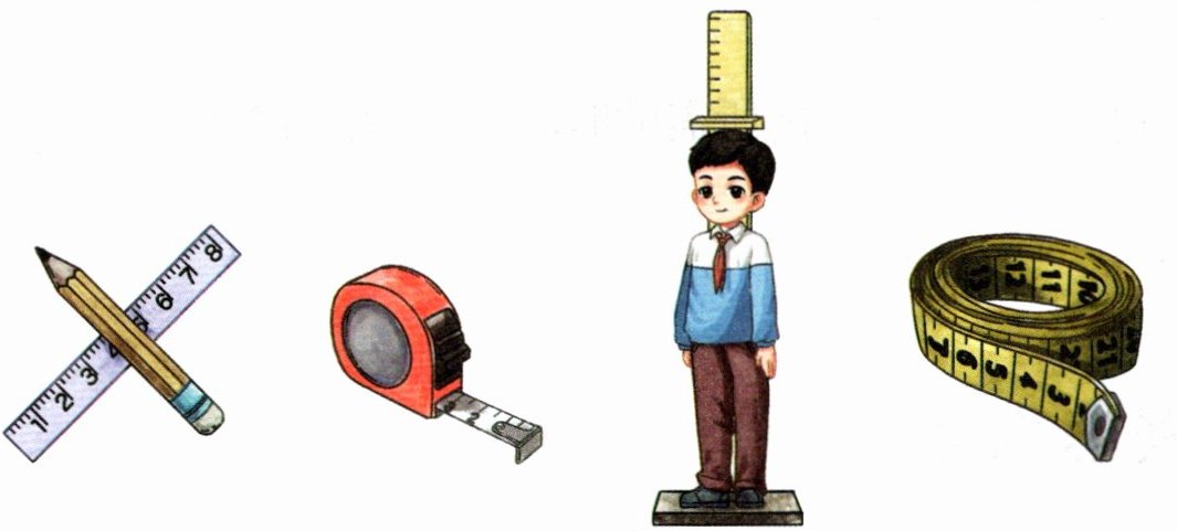 你认识下图中测量距离的工具吗?你是在什么情况下用到这些工具的?你还知道哪些测量距离的工具?