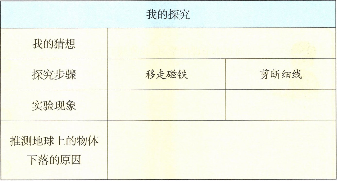 实验现象:移走磁铁:原本被磁铁吸引的铁质物体下落;剪断细线:悬挂的物体下落