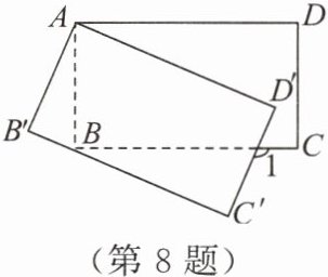 8. 如图,将矩形 $ABCD$ 绕点 $A$ 顺时针旋转到矩形 $AB'C'D'$ 的位置,旋转角为 $\alpha(0^{\circ} \lt \alpha \lt 90^{\circ})$。若 $\angle 1 = 110^{\circ}$,则 $\alpha =$______。