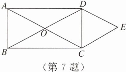 7. 如图,矩形 $ABCD$ 的对角线 $AC$ 与 $BD$ 相交于点 $O$,$CE// BD$,$DE// AC$,$AD = 2\sqrt{3}$,$DE = 2$,则四边形 $OCED$ 的面积是( )。