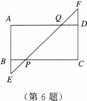 6. 如图,在矩形 $ABCD$ 中,延长 $AB$ 到点 $E$,延长 $CD$ 到点 $F$,$BE = DF$,连接 $EF$ 与 $BC$,$AD$ 分别相交于点 $P$,$Q$.