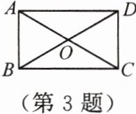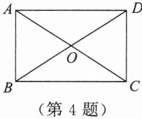 4. 如图,在矩形 $ABCD$ 中,$O$ 是两对角线 $AC$,$BD$ 的交点,点 $O$ 到两邻边的距离分别是 $3\ cm$,$4\ cm$,则此矩形的周长是____.
