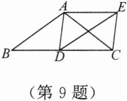 9. 如图,在 $\triangle ABC$ 中,$AB = AC$,$D$ 为边 $BC$ 上一点,以 $AB$,$BD$ 为邻边作 $□ ABDE$,连接 $AD$,$EC$.