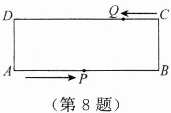 8. 如图,在矩形 $ABCD$ 中,$AB = 24\ cm$,$BC = 8\ cm$,点 $P$ 从 $A$ 开始沿折线 $A - B - C - D$ 以 $4\ cm/s$ 的速度移动,点 $Q$ 从 $C$ 开始沿 $CD$ 边以 $2\ cm/s$ 的速度移动,如果点 $P$,$Q$ 分别从 $A$,$C$ 同时出发,当其中一点到达 $D$ 时,另一点也随之停止运动,设运动时间为 $t\ s$. 当 $t = $____时,四边形 $QPBC$ 为矩形.
