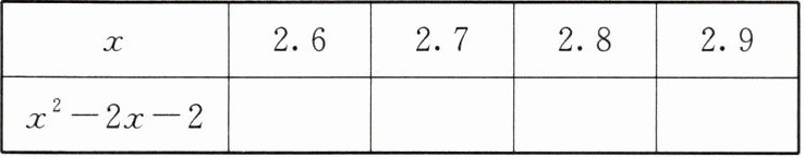 “一块矩形铁片,面积为 $ 2m^{2} $,长比宽多 2m,求铁片的长。”小颖在做这道题时,是这样考虑的:设铁片的长为 $ xm $,列出方程为$ x(x - 2) = 2 $,小颖列出方程后,想知道铁片的长到底是多少,下面是小颖的探索过程。