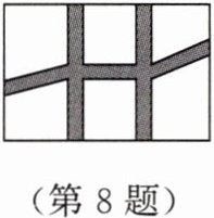 8. 某单位准备将院内一块长 $30$ m、宽 $20$ m 的矩形空地,建成一个矩形花园,要求在花园中修两条纵向平行和一条横向弯折的小道,剩余的地方种植花草。如图,要使种植花草的面积为 $532$ m^2,那么小道进出口的宽度应为多少米?(注:所有小道进出口的宽度均相等,且每段小道均为平行四边形)