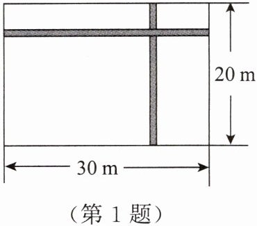 1. 如图,在长 30 m、宽 20 m 的矩形地面上修建两条同样宽的道路,余下部分作为耕地。若耕地面积为$ 551 m^2,$则修建的路宽应为( )。
