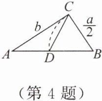 4. 欧几里得的《几何原本》记载,形如$$ x ^ { 2 } + a x = b ^ { 2 } $$的方程的图解法:如图,画$$ \mathrm { Rt } \triangle A B C $$,使$$ \angle A C B = 90 ^ { \circ } $$,$$ B C = \frac { a } { 2 } $$,$$ A C = b $$,再在斜边$$ A B $上截取$ B D = \frac { a } { 2 } $$,则该方程的一个正根是( ).